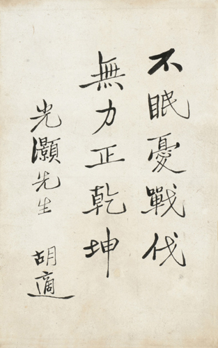 二十世纪名人书法专场回眸百年沧桑,涌现出一批开启与推动中国近现代历史进程的文化巨人。其中包含叱咤风云之政治家、文人骚客、艺术名家。“笔墨有馀迹”,本专场汇聚二百六十余件上世纪百年之名人墨迹,构成厚重的文化积淀。其中香港《工商日报》社长胡秩五上款的书法作品精彩纷呈,内含于右任、冯康侯等名家作品,更有叶公超到目前为止仅见唯一之十八言长联。